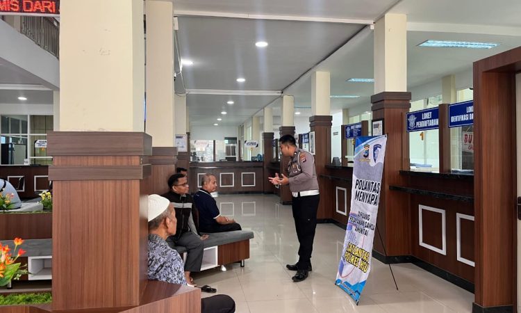 HSU – Dalam rangka meningkatkan kesadaran masyarakat akan pentingnya tertib berlalu lintas, Satuan Lalu Lintas (Satlantas) Polres Hulu Sungai Utara (HSU) melaksanakan kegiatan “Polantas Menyapa” kepada masyarakat wajib pajak dan pemohon Surat Izin Mengemudi (SIM) di ruang pelayanan Samsat dan ruang pelayanan SIM, Senin (29/9/2025).