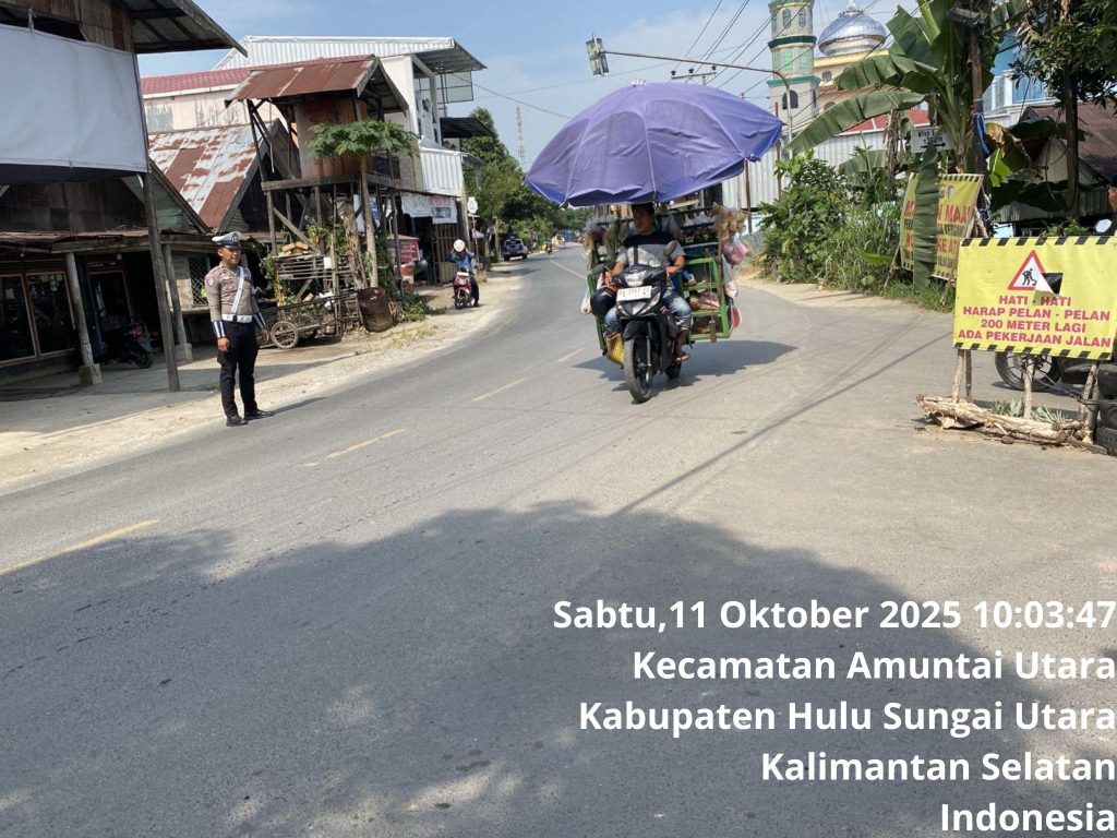Pada Sabtu, 11 Oktober 2025, Polres Hulu Sungai Utara menggelar kegiatan pengaturan lalu lintas dan patroli di lokasi jalan amblas yang terletak di Jalan Nasional Amuntai-Kelua Km 1.94, Desa Sungai Turak, Kecamatan Amuntai Utara, Kabupaten Hulu Sungai Utara (HSU). Kegiatan dimulai pukul 08.00 hingga 10.00 Wita dengan tujuan utama menjaga ketertiban dan kelancaran arus lalu lintas sekaligus memastikan situasi aman di sekitar lokasi jalan amblas yang berpotensi menimbulkan gangguan dan kecelakaan lalu lintas.
