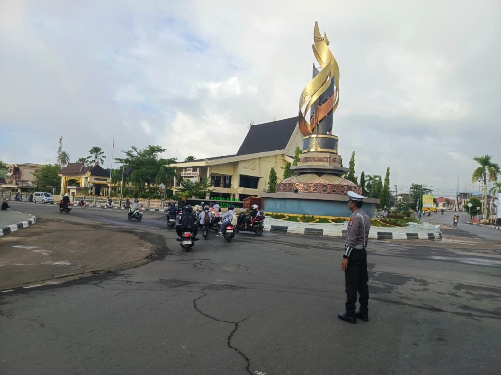 Selasa, 28 Oktober 2025, personel Sat Lantas Polres Hulu Sungai Utara (HSU) melaksanakan kegiatan ploting jalur serta pengamanan dan pengaturan arus lalu lintas dalam rangka Kirab Obor yang diselenggarakan di wilayah hukum Polres HSU. Kegiatan ini dimulai pukul 07.00 Wita dan mengambil rute dari depan Kantor Pemerintah Daerah Kabupaten HSU menuju Kabupaten Hulu Sungai Tengah (HST). Pelaksanaan pengamanan ini bertujuan untuk menjaga kelancaran arus lalu lintas sekaligus memberikan rasa aman dan nyaman bagi para peserta kirab maupun masyarakat pengguna jalan yang melintas di sepanjang rute acara.