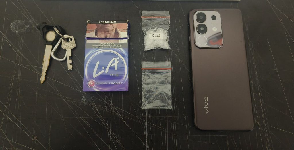 Barang bukti utama yang berhasil disita adalah 1 (satu) paket Narkotika jenis Sabu dengan berat total kotor mencapai 5.26 Gram dan berat bersih 5.06 Gram. Paket kristal haram tersebut dibungkus rapi dalam 1 (satu) lembar plastik klip transparan dan disimpan tersembunyi di dalam 1 (satu) buah Kotak Rokok LA Ice PurpleBoost berwarna ungu, menunjukkan upaya tersangka untuk mengelabui petugas.