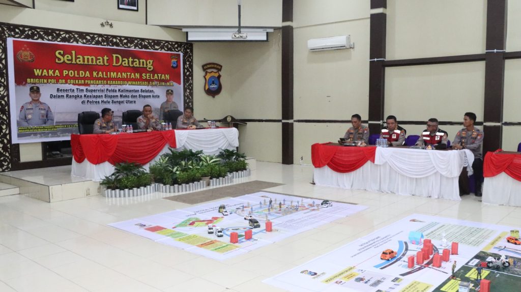 Acara yang menunjukkan komitmen tinggi Polri dalam menjaga stabilitas keamanan ini dipimpin langsung oleh Wakapolda Kalimantan Selatan, Brigjen Pol Dr. Golkar Pangarso Rahardjo Winarsadi, S.H., S.I.K., M.H., didampingi oleh Tim Supervisi utama dari Polda Kalsel. Tim ini terdiri dari pejabat-pejabat strategis, antara lain Karoops Polda Kalsel Kombes Pol Nurhandono, S.I.K., M.H., Dir Samapta Polda Kalsel Kombes Pol Timbul Rein Krisman Siregar, S.I.K., M.Si., Kabid Hukum Polda Kalsel Kombes Pol Arif Hidayat R., S.I.K., M.H., CPM., serta KBO Dit Samapta AKBP Haris, S.Sos., M.Si., beserta anggota tim lainnya.