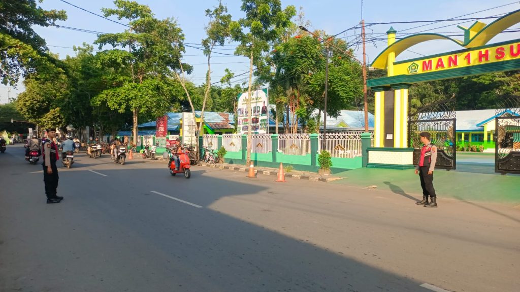 Dalam rangka menciptakan situasi keamanan dan ketertiban masyarakat (Harkamtibmas) yang aman dan kondusif, Satuan Samapta Polres Hulu Sungai Utara (HSU) menggelar personelnya pada kegiatan pengamanan dan pengaturan arus lalu lintas di wilayah hukum Polres HSU pada Kamis (25/9/2025) pagi. Kegiatan yang dimulai sejak pukul 07.00 Wita ini dilaksanakan di titik-titik strategis yang rawan menimbulkan kemacetan maupun potensi kecelakaan, seperti di Simpang Tiga Sungai Malang dan depan Madrasah Aliyah Negeri (MAN) 1 Amuntai.