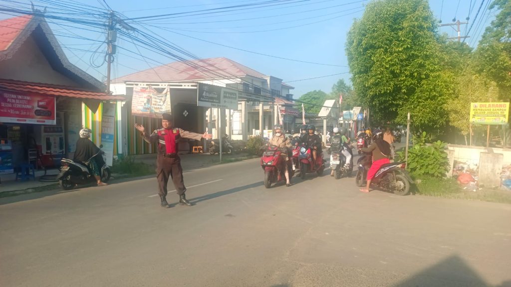 Personel Sat Samapta turun langsung ke lapangan untuk melakukan pengaturan arus kendaraan agar aktivitas masyarakat pada jam sibuk pagi hari dapat berjalan dengan lancar. Kehadiran petugas di lokasi ini sekaligus menjadi bentuk pelayanan dan upaya preventif untuk meminimalisir pelanggaran lalu lintas, kecelakaan, dan potensi gangguan keamanan di tengah mobilitas warga yang padat.