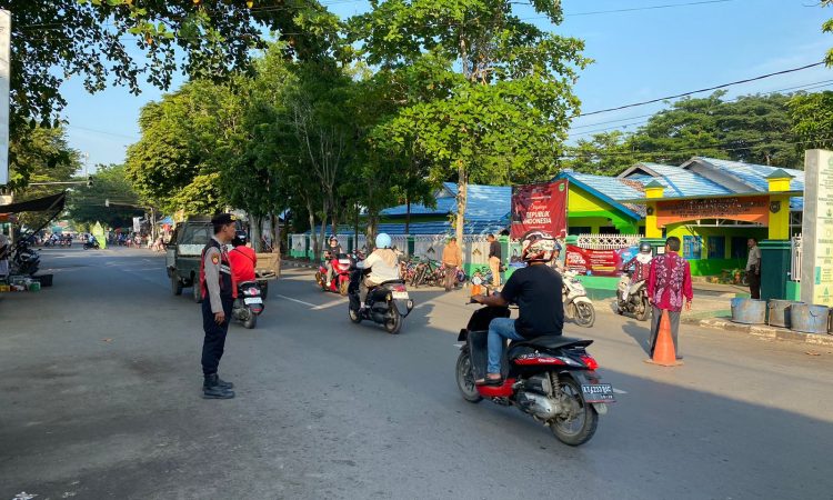 Personel Sat Samapta turun langsung ke lapangan untuk melakukan pengaturan arus kendaraan agar aktivitas masyarakat pada jam sibuk pagi hari dapat berjalan dengan lancar. Kehadiran petugas di lokasi ini sekaligus menjadi bentuk pelayanan dan upaya preventif untuk meminimalisir pelanggaran lalu lintas, kecelakaan, dan potensi gangguan keamanan di tengah mobilitas warga yang padat.
