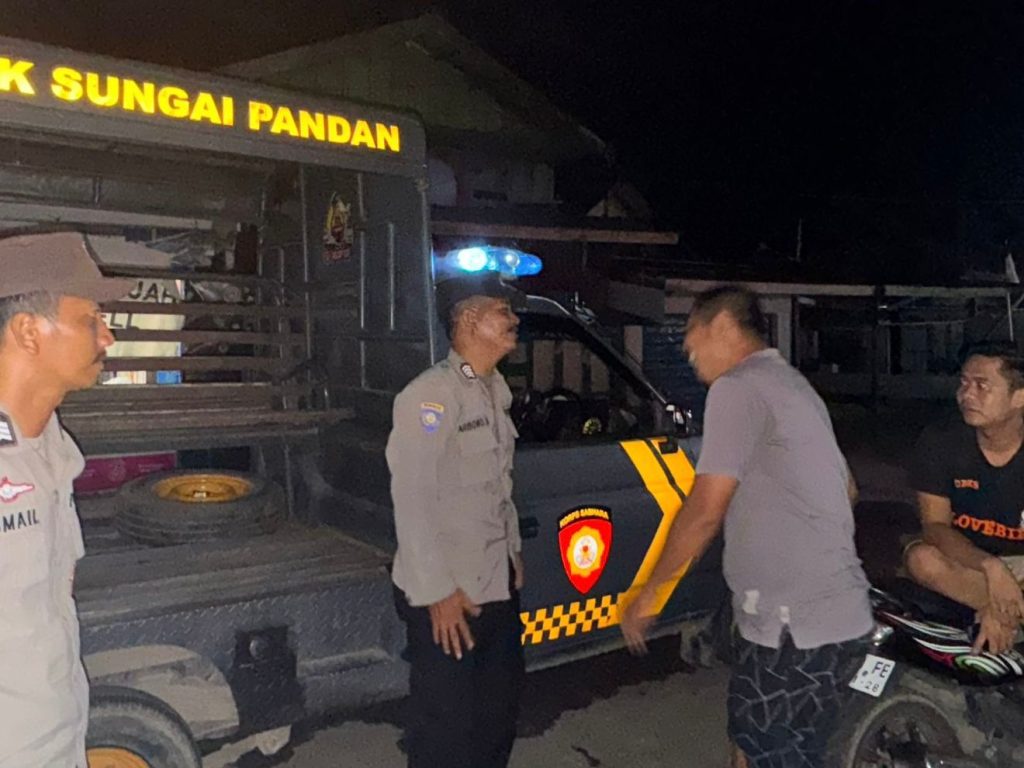 Dalam rangka menjaga situasi keamanan dan ketertiban masyarakat, Polsek Sungai Pandan melaksanakan kegiatan patroli dialogis dan sambang pada Jumat malam, 26 September 2025, mulai pukul 22.30 WITA hingga selesai. Kegiatan patroli ini dilaksanakan dengan menyasar wilayah Desa Sungai Pandan Hulu, Kecamatan Sungai Pandan, Kabupaten Hulu Sungai Utara (HSU), menggunakan satu unit mobil patroli Polsek Sungai Pandan. Adapun personel yang terlibat dalam giat tersebut adalah Bripka Aribowo, S., Brigadir Ismail, S.H., serta Bripda M. Riza, S.