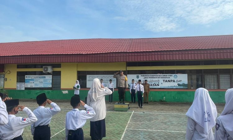 Senin, 29 September 2025, pukul 07.30 Wita, Bhabinkamtibmas Polsek Amuntai Selatan, Aipda Bayu Fendy Agustiawan, melaksanakan tugas sebagai pembina upacara bendera di SMP Negeri 2 Amuntai Selatan yang terletak di Jalan Gaya Baru Telaga Silaba, Kecamatan Amuntai Tengah, Kabupaten Hulu Sungai Utara. Kegiatan ini dihadiri pula oleh Bhabinkamtibmas Briptu Hasan As’Ari, Kepala Sekolah Rega Rosiyanti, S.Pd, bersama dewan guru, staf, serta seluruh siswa dan siswi sekolah yang antusias mengikuti jalannya upacara dengan tertib dan khidmat.