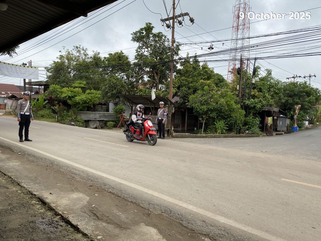 Hulu Sungai Utara – Guna menjaga keamanan dan kelancaran arus lalu lintas di wilayah hukum Polres Hulu Sungai Utara (HSU), jajaran personel kepolisian melaksanakan kegiatan pengaturan dan patroli lalu lintas (Turjawali) di lokasi jalan amblas yang berada di Jalan Nasional, tepatnya di Jl. Amuntai – Kelua KM 1.94, Desa Sungai Turak, Kecamatan Amuntai Utara, Kabupaten Hulu Sungai Utara, Rabu (09/10/2025).