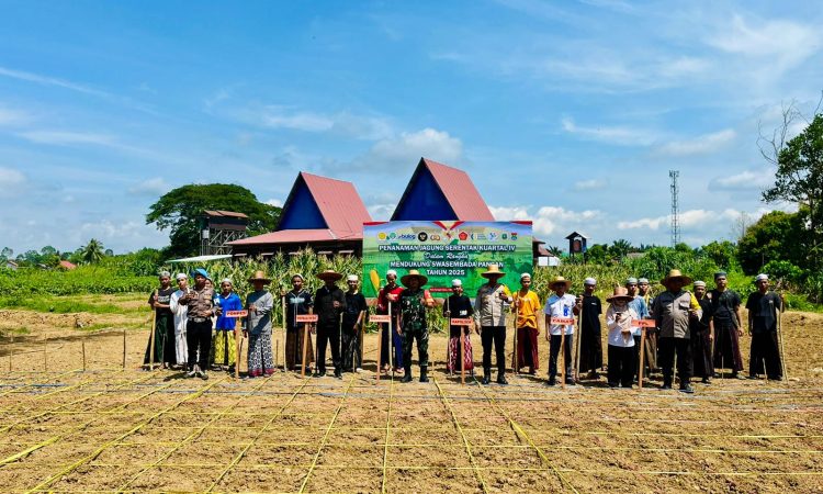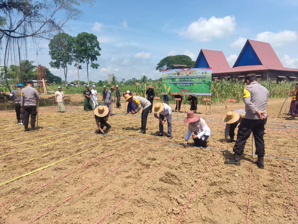 Amuntai, 8 Oktober 2025 – Dalam rangka mendukung program Swasembada Pangan Nasional Tahun 2025, Polsek Amuntai Tengah Polres Hulu Sungai Utara (HSU) melaksanakan kegiatan Penanaman Jagung Serentak Kuartal IV Tahun 2025 yang berlangsung di Perkebunan Pondok Pesantren Darussalam, Desa Muara Tapus, Kecamatan Amuntai Tengah, Kabupaten Hulu Sungai Utara, pada Rabu (08/10/2025) pukul 11.00 WITA.