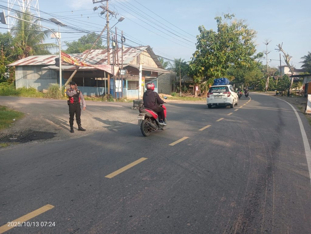 Personel Samapta Polsek Amuntai Utara, jajaran Polres Hulu Sungai Utara (HSU), melaksanakan kegiatan patroli dan pengaturan lalu lintas di wilayah hukum Polres HSU pada Senin, 13 Oktober 2025, sekitar pukul 16.40 Wita hingga selesai. Kegiatan yang berlokasi di Desa Tayur tersebut dilakukan oleh dua personel, yakni Bripka Hendra Pranata dan Bripka Lamin Syahril, dengan menggunakan sarana operasi Patroli R2.