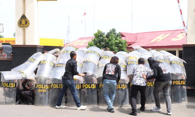Amuntai – Dalam rangka meningkatkan kesiapsiagaan dan kemampuan personel menghadapi potensi gangguan keamanan, Polres Hulu Sungai Utara (HSU) melaksanakan Latihan Simulasi Sistem Pengamanan Markas Komando (Sispam Mako) Alarm Stelling pada Selasa (14/10/2025) sekitar pukul 10.00 WITA di halaman Mapolres HSU.