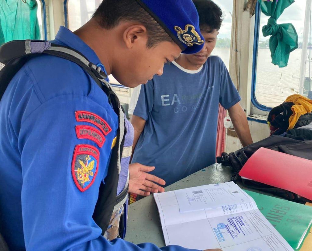 Dalam kegiatan pertama, anggota Sat Polairud Polres HSU, Bripda Yahya Aji, melaksanakan patroli dan pemeriksaan kapal terhadap kapal tunda (TB) NRS VII yang sedang menarik tongkang (BG) NRS V di posisi koordinat (S 2°31’16.7484″ E 114°51’41.4684″). Dalam pemeriksaan terhadap dokumen kapal dan 11 orang anak buah kapal (ABK), petugas memastikan seluruh dokumen lengkap dan sesuai prosedur. Hasil pemeriksaan menunjukkan bahwa tidak ditemukan adanya pelanggaran hukum maupun tindak pidana. Kegiatan berjalan lancar dan tertib tanpa hambatan berarti.