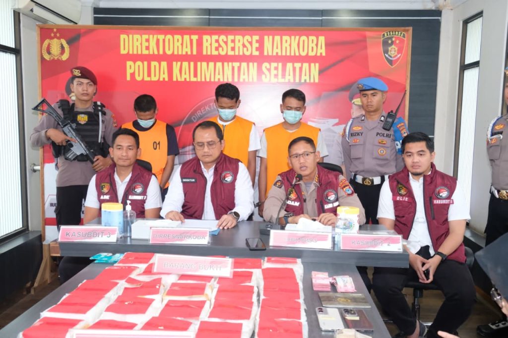 Pengungkapan kasus besar ini disampaikan langsung dalam konferensi pers yang dihadiri Dir Resnarkoba Polda Kalsel Kombes Pol Baktiar Joko Mujiono, S.I.K., M.M., Kabid Humas Polda Kalsel Kombes Pol Adam Erwindi, S.I.K., M.H., Kasubdit 2 Ditresnarkoba Polda Kalsel Kompol Oliestha Ageng Wicaksana, S.I.K., M.H., C.P.H.R., dan Kasubdit 3 Ditresnarkoba Polda Kalsel AKBP Ade Harri Sistriawan, S.H., S.I.K., M.I.K., pada Rabu (5/11/2025) di Aula Presisi Ditresnarkoba Polda Kalsel, Banjarmasin.