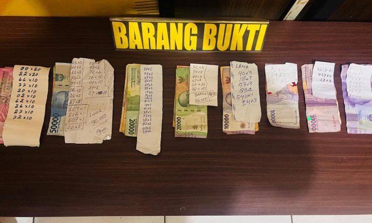 Barang bukti yang berhasil disita dari F(64) sangat komprehensif, terdiri dari 8 (delapan) lembar sobekan kertas bertuliskan angka-angka tebakan Togel, yang disertai dengan uang tunai setoran dari pemasang. Total uang tunai yang berhasil diamankan dari kantong baju F(64) adalah sebesar Rp 331.000,- (Tiga Ratus Tiga Puluh Satu Ribu Rupiah), menunjukkan adanya praktik perjudian yang aktif.