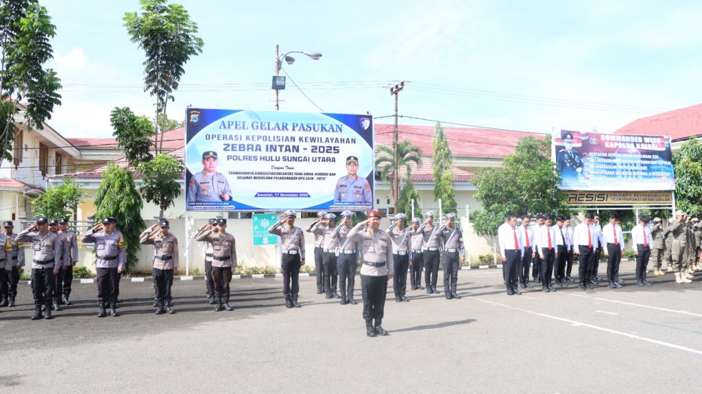 Amuntai, 17 November 2025 – Kepolisian Resor Hulu Sungai Utara (Polres HSU) hari ini secara resmi menggelar Apel Pasukan Operasi Kewilayahan “Zebra Intan 2025”. Apel yang dilaksanakan di Halaman Mapolres HSU pada Senin, 17 November 2025, pukul 08.30 Wita, menandai dimulainya operasi penertiban lalu lintas skala besar yang akan berlangsung selama dua pekan ke depan. Operasi ini mengedepankan tindakan preemtif dan preventif, namun tetap didukung penegakan hukum (Gakkum) yang terukur dan humanis.