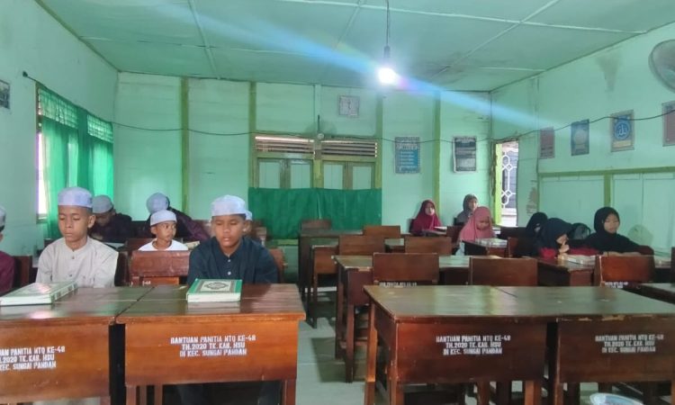 Rangkaian acara diawali dengan khidmat melalui pembukaan dan pembacaan doa awal belajar yang dipimpin oleh Bapak H. Muhrani, S.Pd. Suasana religius kental terasa saat para santri mulai memasuki sesi pembelajaran Ilmu Tajwid yang dibimbing langsung oleh Ustadz Kasrani. Dalam kesempatan tersebut, terlihat antusiasme tinggi dari para santri dalam mendalami kaidah pembacaan Al-Qur’an yang baik dan benar sebagai pondasi utama pembentukan akhlakul karimah sejak dini.