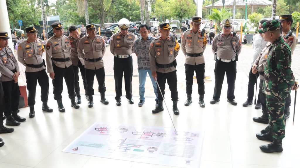 Sebelum pelaksanaan aksi, personel gabungan terlebih dahulu melaksanakan apel kesiapan pengamanan, dilanjutkan dengan Tactical Floor Game (TFG) sebagai bentuk kesiapan teknis dalam menghadapi berbagai potensi situasi di lapangan. Langkah ini dilakukan untuk memastikan seluruh personel memahami tugas, tanggung jawab, serta skenario pengamanan secara menyeluruh.