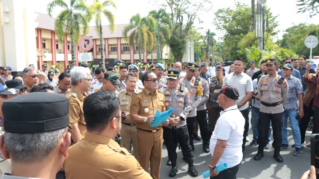 Kegiatan pengamanan dipimpin langsung oleh Kapolres Hulu Sungai Utara AKBP Agus Nuryanto, S.I.K., M.Si, dengan melibatkan unsur Forkopimda, TNI, Polri, serta instansi terkait. Sejumlah pejabat daerah turut hadir dan memantau jalannya kegiatan, di antaranya Bupati HSU H. Sahrujani, Wakil Bupati HSU Hero Setiawan, Ketua DPRD HSU H. Fadilah, S.M., Dandim 1001 HSU-BLG Letkol Inf. Endra Retno Erowanto, S.Sos., M.I.P., serta jajaran pimpinan Polres HSU dan instansi vertikal lainnya.