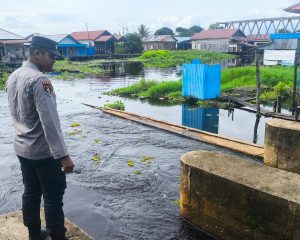 Guna mengantisipasi potensi bencana hidrometeorologi, jajaran Polsek Danau Panggang melakukan pemantauan dan monitoring secara intensif terhadap perkembangan debit air sungai di wilayah hukumnya. Kegiatan ini