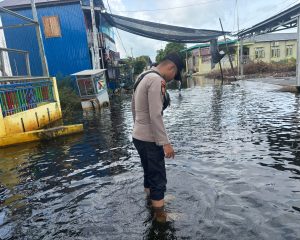HULU SUNGAI UTARA, BABIRIK – Personel Polsek Babirik terus melakukan pengawasan intensif terhadap kondisi debit air di wilayahnya guna memastikan keamanan masyarakat pascakenaikan level air